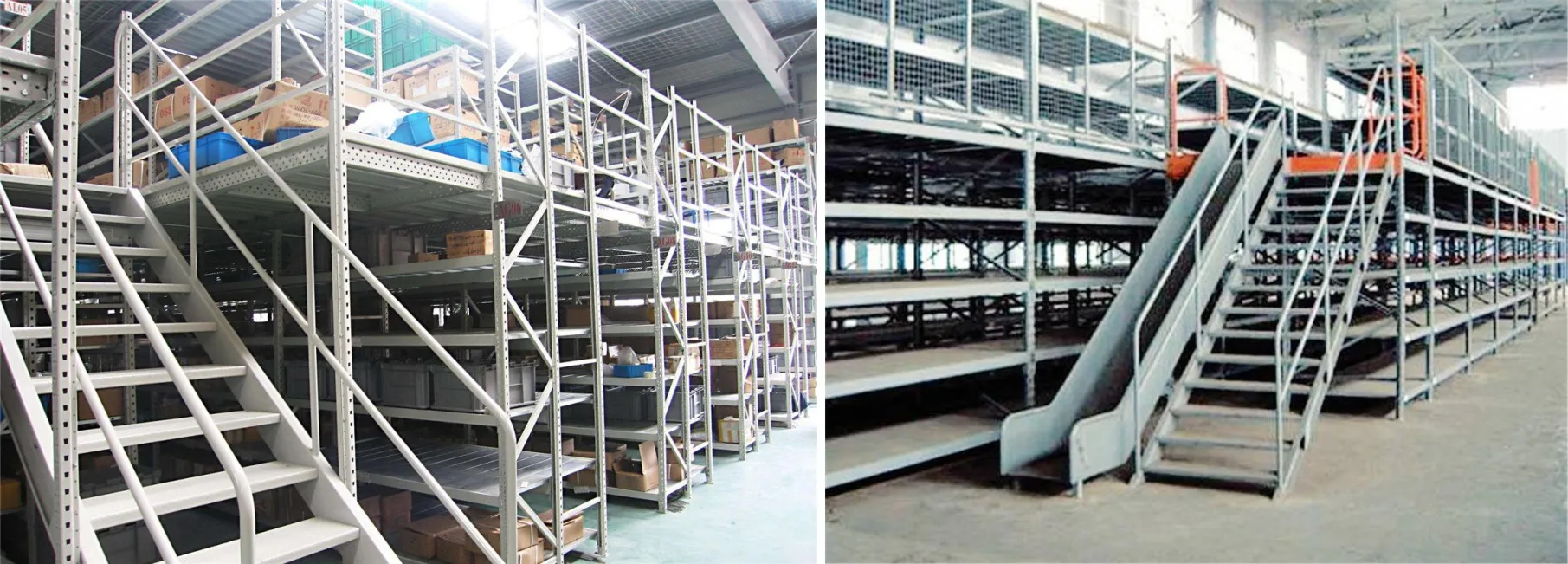 2、阁楼货架楼面铺设货架专用楼板,与花纹钢板或刚格栅相比层载能力强、整体性好、层载均匀、表面平整、易锁定等特点。