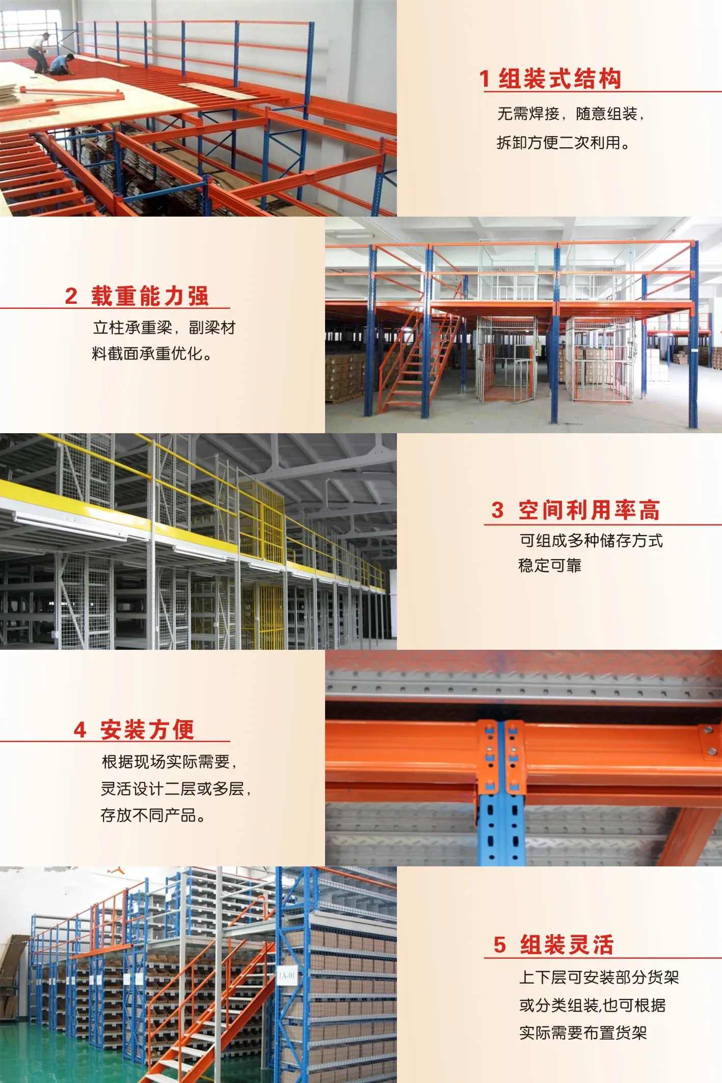 3、阁楼货架充分考虑人性化物流,设计美观,结构大方。安装、拆卸方便,可根据实地灵活设计。