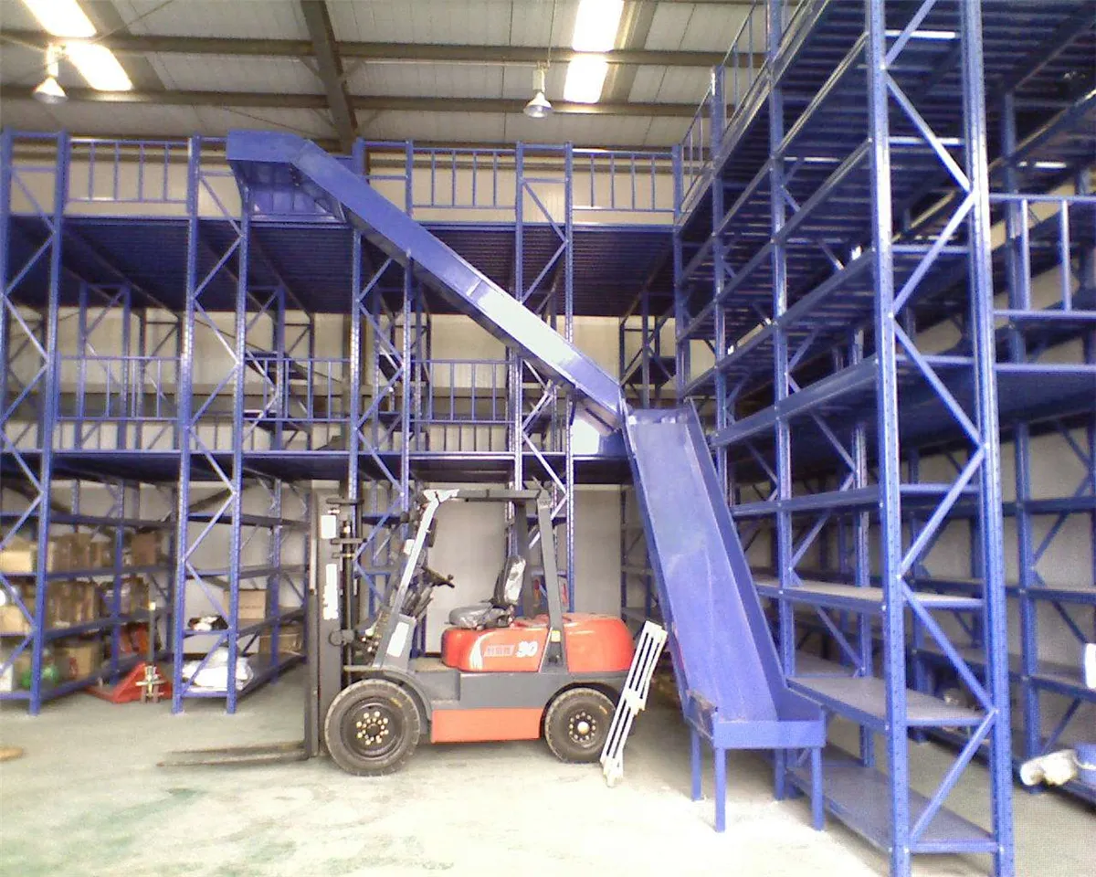 阁楼式货架面板有平板、花纹钢板、冲孔钢板等品种以适应防火、通风、光照等等不同使用要求。货物上下楼层可选择叉车、液压升降台、货梯等方式;货物同层运输通常使用小型手推车完成。