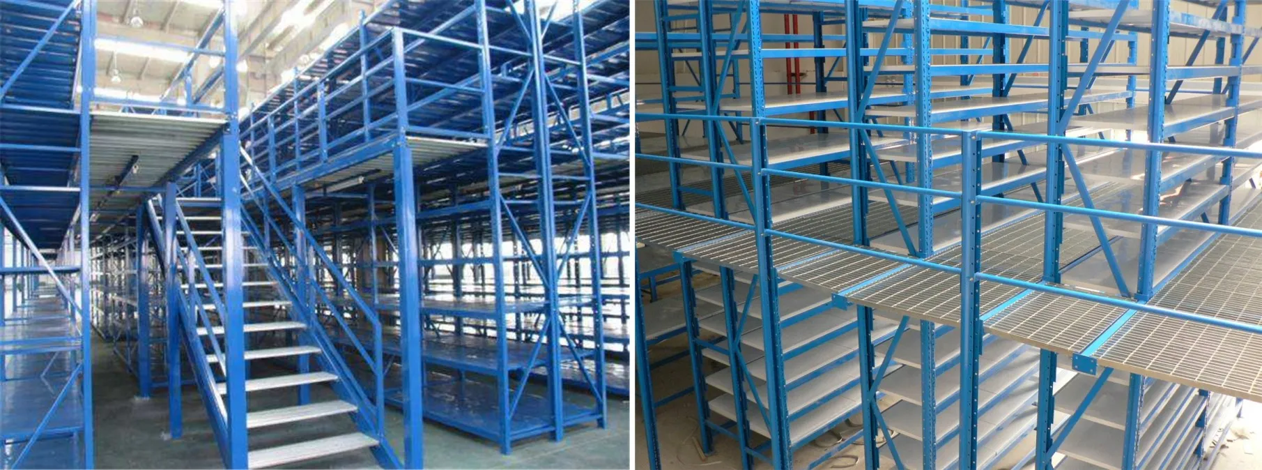 2、阁楼货架楼面铺设货架专用楼板,与花纹钢板或刚格栅相比层载能力强、整体性好、层载均匀、表面平整、易锁定等特点。