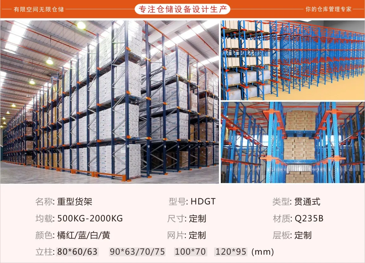 1、货物存储通道亦为叉车储运通道,是存储密度较高的一种形式货架。